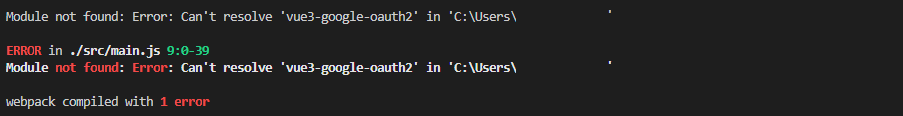 Module not found: Error: Can't resolve 'vue3-google-oauth2' in