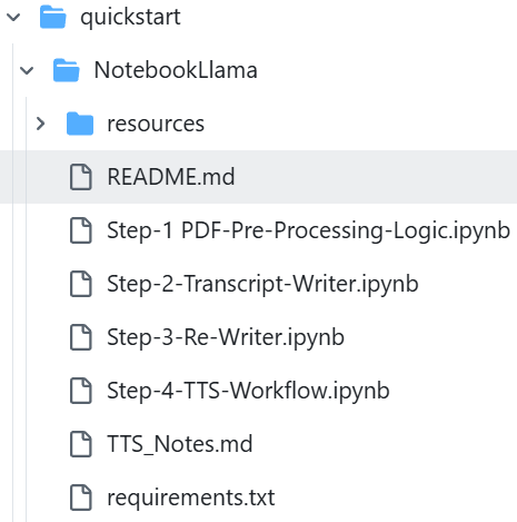 https://github.com/meta-llama/llama-recipes/blob/main/recipes/quickstart/NotebookLlama/README.md