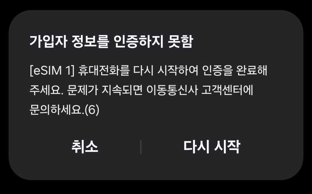 4-2) 통신사 입장에서는 IMEI 2번 = eSIM 2번 이잖아, 하고 인증을 거절하는 상황일 수도 있다.