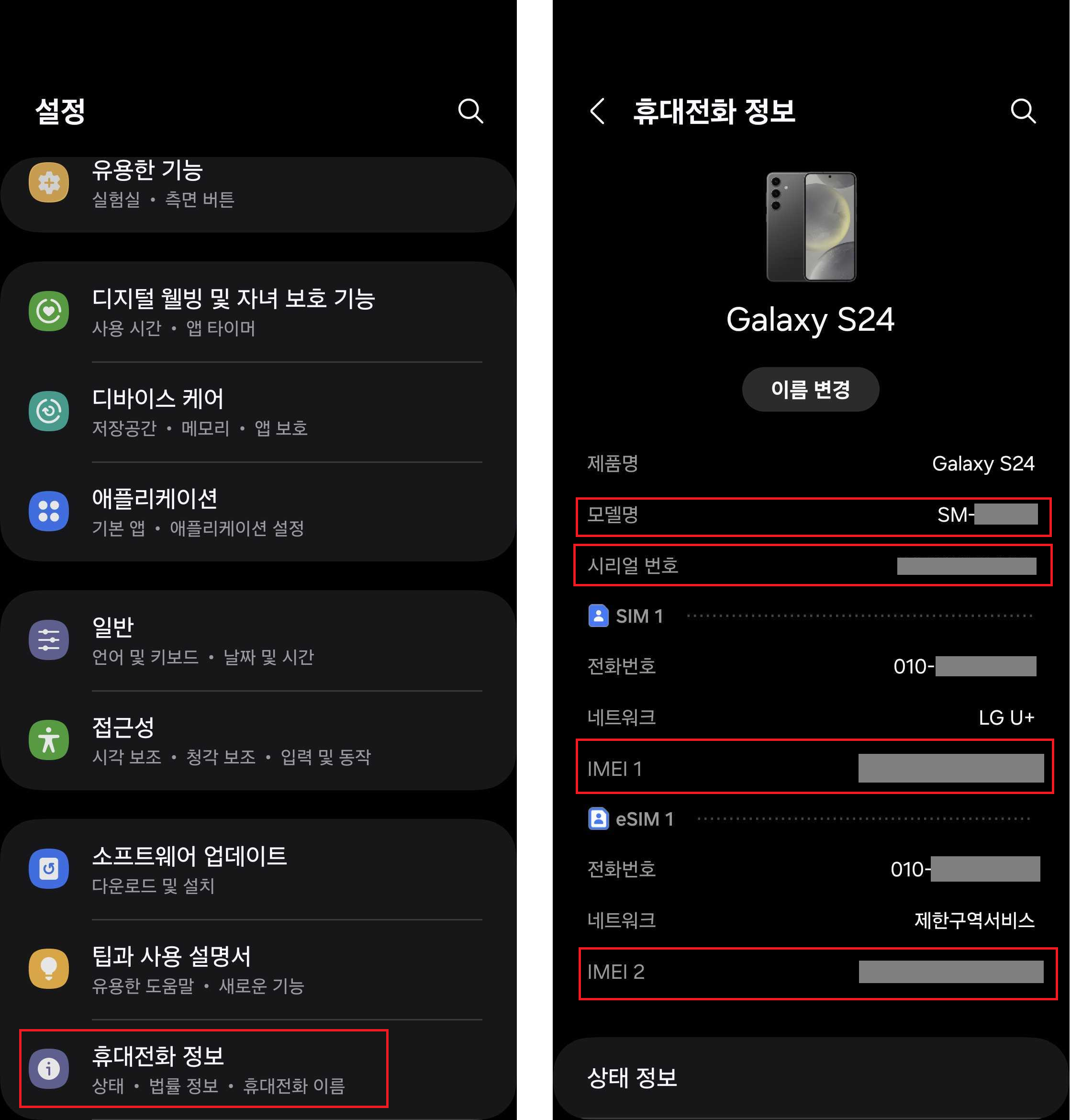 eSIM을 신청하려면 IMEI,모델명 등을 기재하게 됩니다.