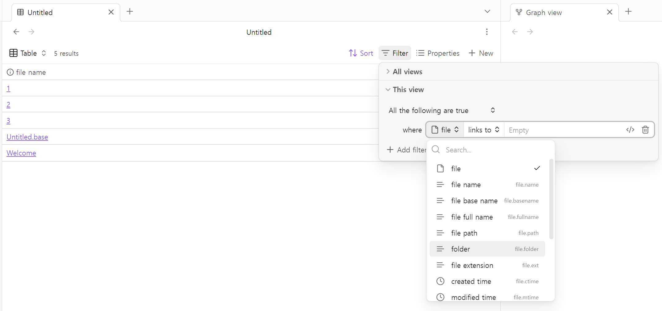 Base 는 기본적으로 Vault 안에 있는 모든 파일들이 표시됩니다.