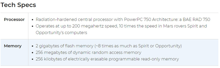 프로세서는 오퍼튜니티보다 10배 정도의 향상이 있었지만, 가정용 컴퓨터에 비해서는 아직까지도 사양이 낮습니다.
